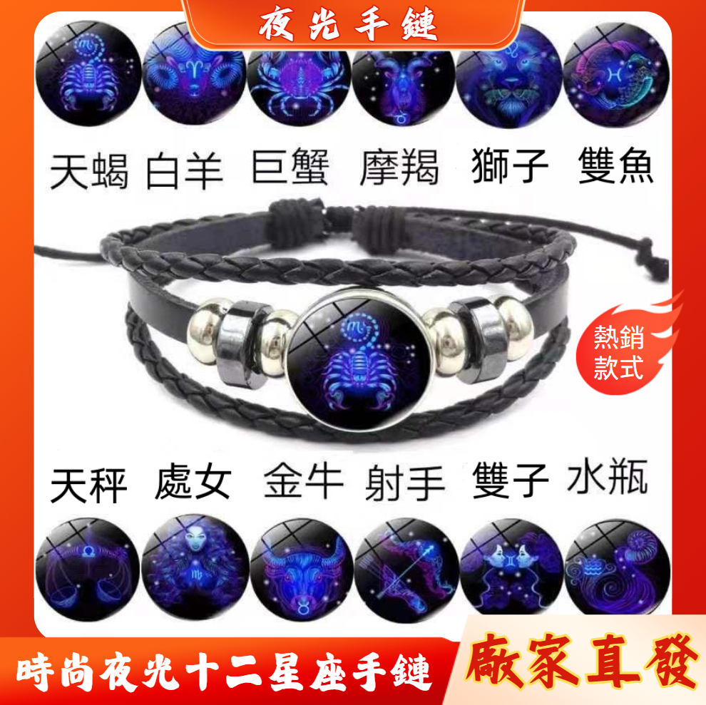 12分鐘前十二星座手鍊情侶皮手鍊多層編織時尚,夜光十二星座手環飾品小清新 - 【夜光十二星座手鍊 六入組】